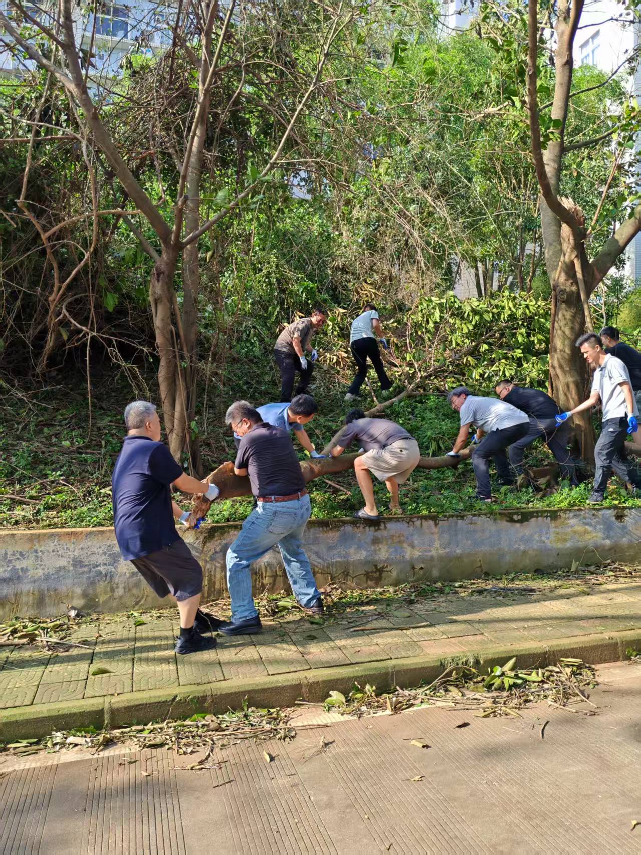 公司领导与教职工参与台风“麦德姆”灾后恢复工作