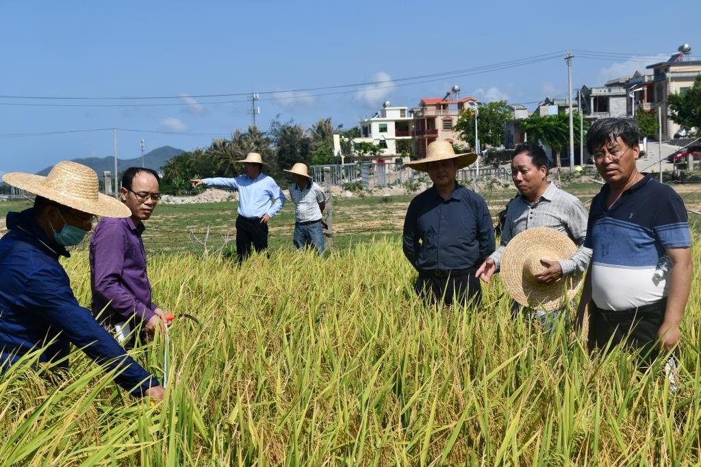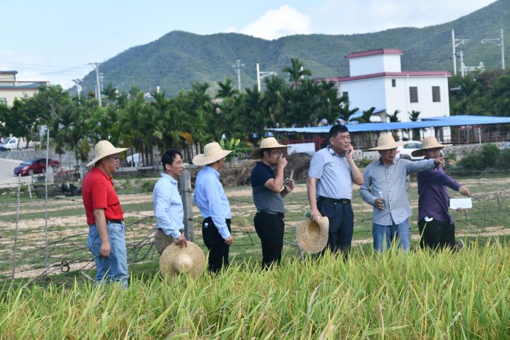 5月11日,太阳成集团袁隆平院士海水稻创新团队邀请湖南省、海南省、广东省等相关单位专家,对公司位于三亚市崖城区崖城镇太策村的耐盐碱水稻杂交组合及种质材料和滨海盐渍水稻田改良剂应用试验进行了现场评价和测产验收,土壤盐浓度为0.3-0.5%(田间表层水盐分浓度为0.48%)。