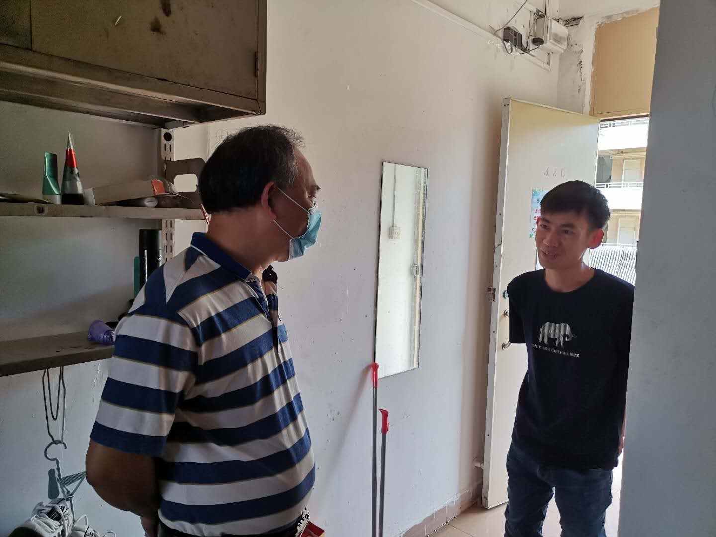 在研究生宿舍,邓伟强和研究生亲切交谈,关心员工在防疫物品、生活、学习等方面情况,并要求员工一定要严格按照公司的要求,做好防疫工作,个人卫生清洁,在校期间不得私自外出,确有必要的,须严格履行报告和请假程序,明确出行路线、出行方式,获得批准后方可外出;要坚持每天早、午体温检测“日报告”制度和身体健康状况“零报告”制度,不聚集,切实做到防疫和学习两不误,让家人放心、公司安心。随后,又到校门口测温点和临时等候区看望太阳成集团tyc志愿者和老师。