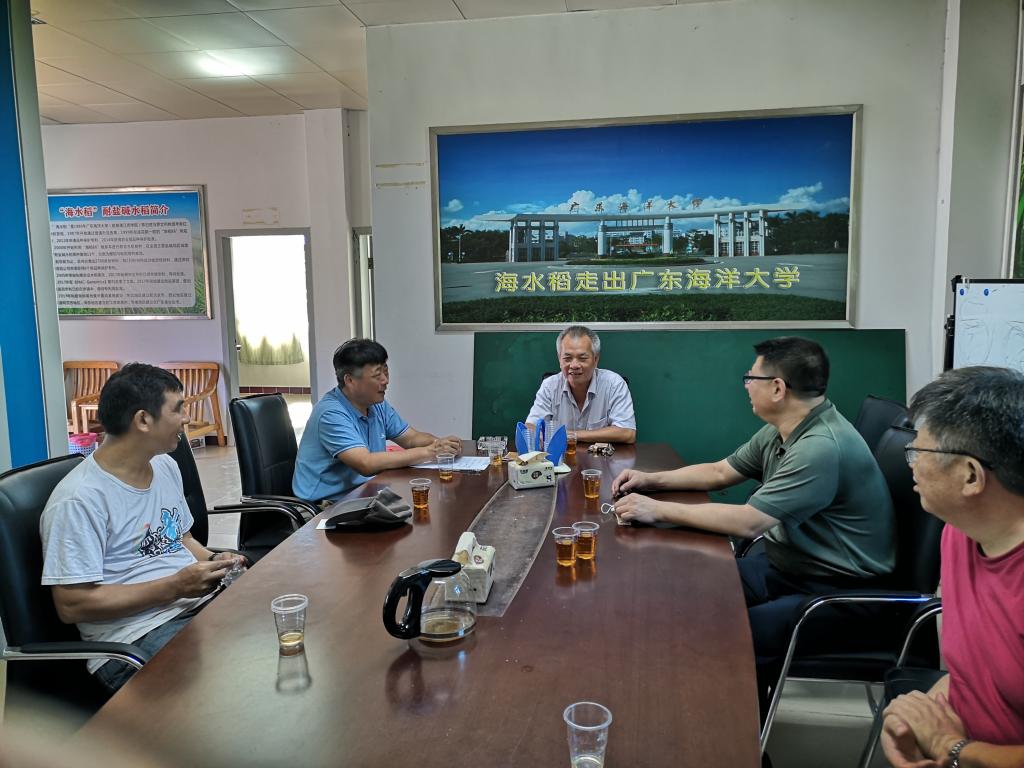 在随后开展的座谈会上,陈日胜就海水稻的育种与应用推广情况进行了简要汇报,并阐述了将海宴镇华侨农场这块大面积盐渍地打造成海水稻渔稻共作生态农业产业园,从农业生产到加农产品加工,开发市场营销,直接带动农民增收,实现乡村振兴的必要性和可行性。谭北平讲话指出,陈日胜负责的公司台山海水稻种养基地受到省委和相关厅领导的重视,受到湛江市和江门市的重视,这对于建设海水稻种养结合产业园作为我省振兴乡村和脱贫攻坚亮点工程具有重要价值。公司十分重视海水稻研发工作,支持陈日胜和老师们共同开展海水稻育种与推广应用,通过获得政府支持建设海水稻种养结合、双水双绿现代农业产业园,实现一二三产融合发展,同时作为公司在江门的海水稻渔稻共作研发基地,将有力促进公司负责的国家耐盐碱水稻技术创新中心华南中心的建设与发展。与会领导和专家积极发言,就海水稻的研发过程和海水稻品种品系材料与盐碱地生态环境以及渔稻共作等方面进行了探讨,对建设台山海水稻种养结合现代农业产业园和海水稻基地,支撑国家耐盐碱水稻技术创新中心华南中心的建设与发展,明确表明了支持的态度。