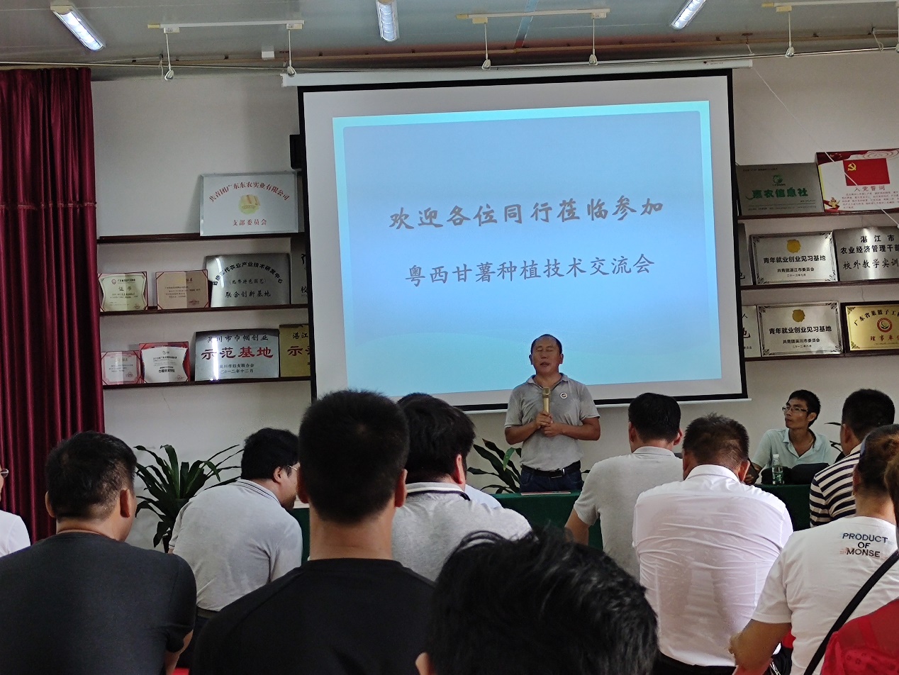 2020年8月15日上午,公司与湛江市农科院旱作所联合主办第一届粤西甘薯种植技术交流会,参会人员由从事甘薯育种与种植推广的科技人员及来自粤西各甘薯种植区的种植大户组成,人数达60多人,公司朱宏波副教授主持会议,并做了“粤西地区甘薯产业现状”的报告。与会人员对粤西地区甘薯种植方面的各方面技术问题进行了广泛交流,并在种苗供应和技术合作等方面建立多项合作意向。