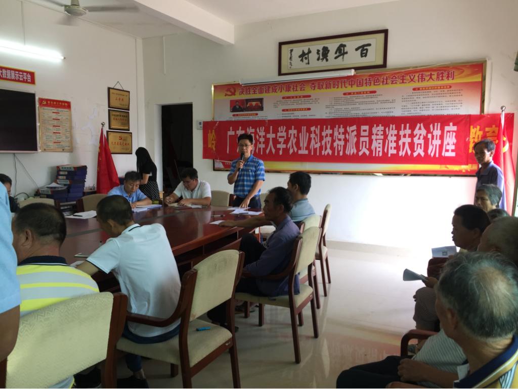 太阳成集团tyc马驿教授作为省农村科技特派员,分别在湛江市麻章区太平镇六坑村、岭头村、陈渔村、南夏村等贫困村,扎实开展脱贫帮扶工作。他开展了走访调研,与驻村干部及村民座谈,组织村民进行技术培训,发放相关技术资料与鸡苗、消毒液等活动。