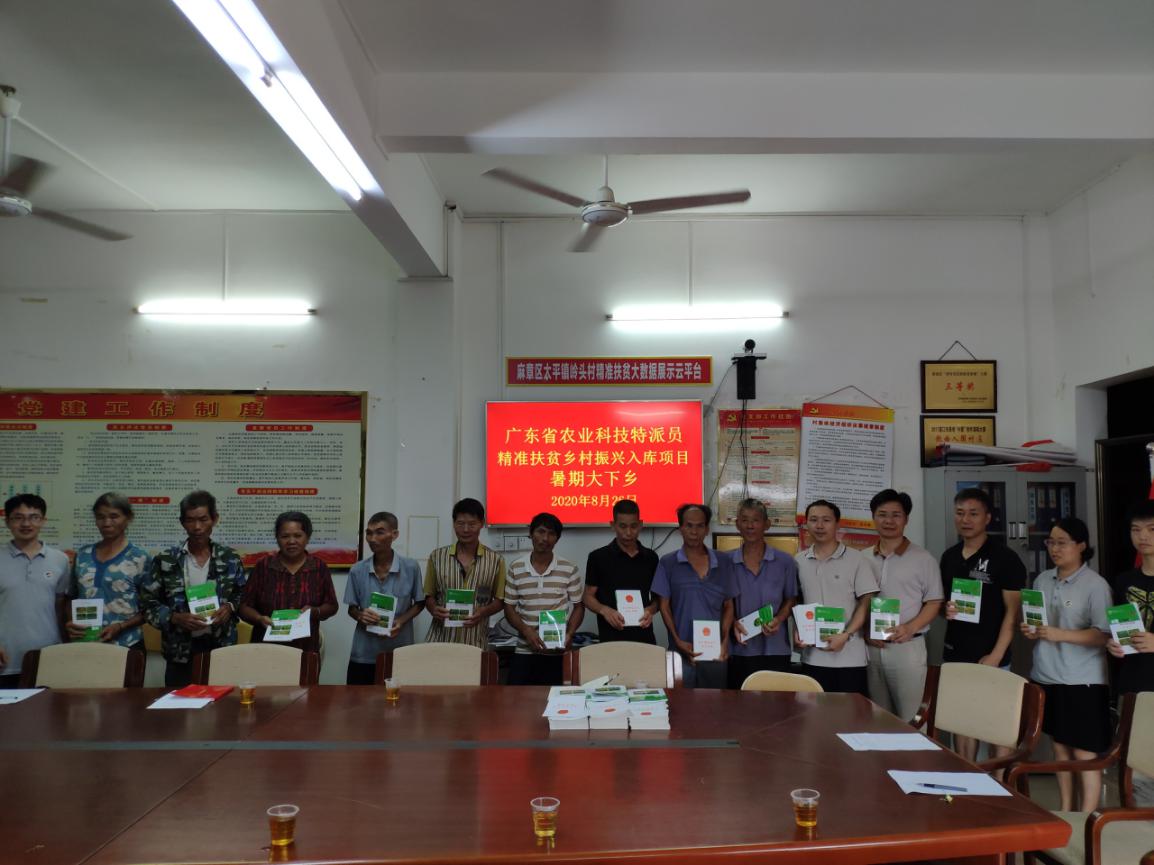 2020年8月25日-26日,太阳成集团农村科技特派员马驿教授、高振华教授、丁月霞博士、吴正伟博士、饶刚顺博士、林巧玲实验师等12人先后赴麻章区湖光镇赤忏村和太平镇岭头村调研脱贫与新农村建设并为农户带去农业科技图书和种植用肥料。