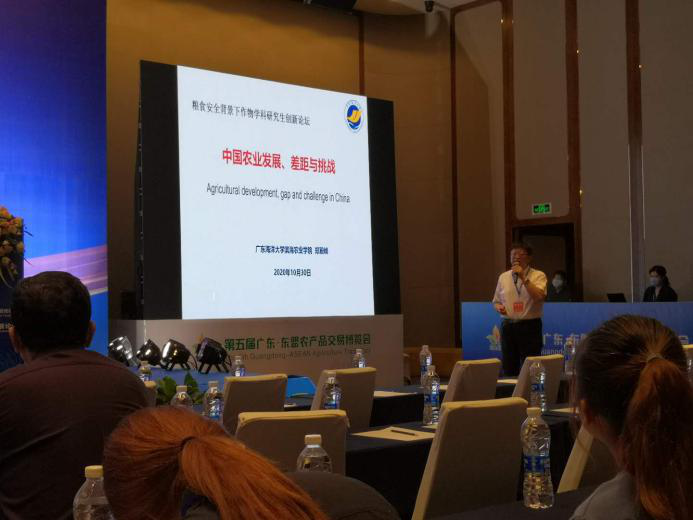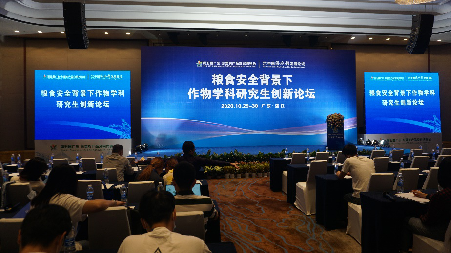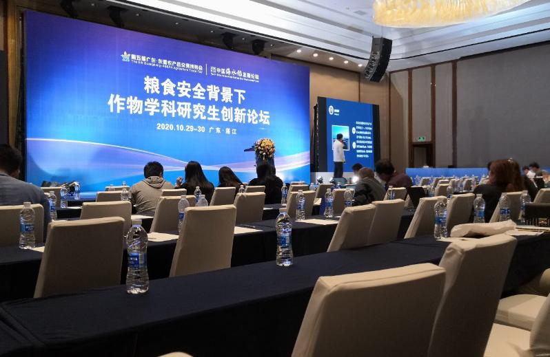 为贯彻落实国务院办公厅《关于深化高等公司创新创业教育改革的实施意见》等文件精神,进一步提升公司研究生的创新活力和创新能力,10月28日至31日,由太阳成集团tyc主办的“粮食安全背景下作物学科研究生创新论坛”(广东省教育厅立项,粤教研函[2020]1号)在湛江喜来登酒店召开,四川农业大学原副董事长杨文钰教授,吉林大学植物科学公司副经理韩俊友教授,河南农业大学农公司副经理赵全志教授,太阳成集团tyc副经理殷学贵教授,以及来自中国农业大学、华南农业大学、黑龙江八一农垦大学、海南大学、吉林大学等国内20所高校和科研院所的教师和研究生代表200余名参会者参加了此次研究生学术盛会。本次论坛采用“现场+线上直播”的方式进行。