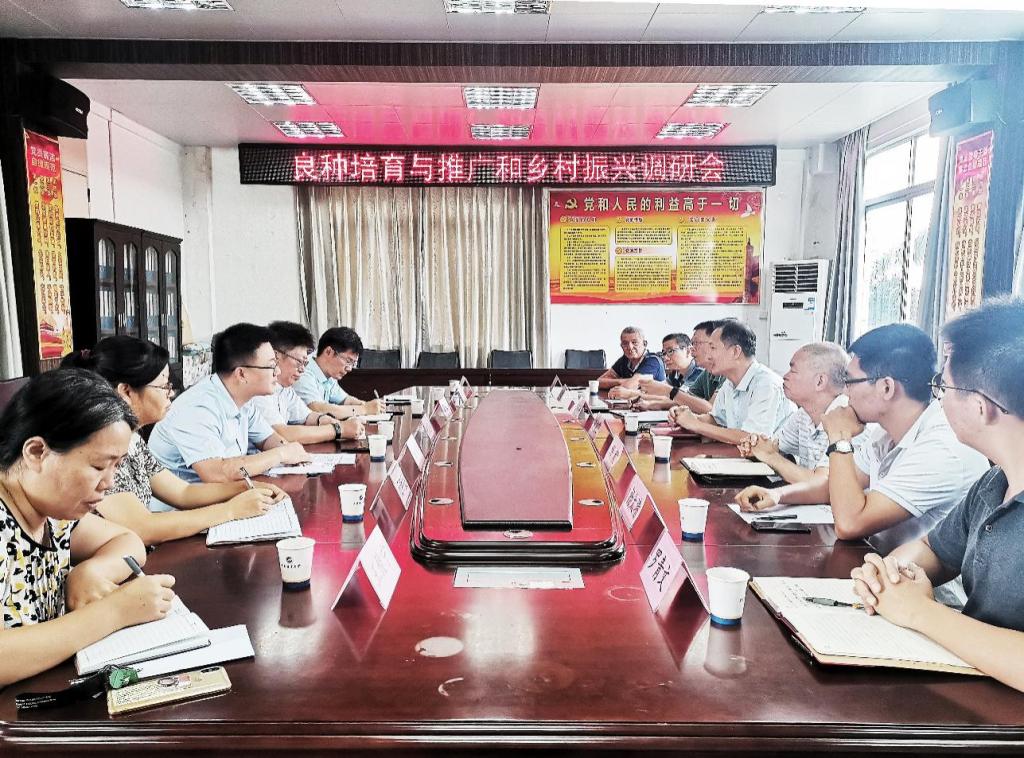 7月9日上午,湛江市农业农村局党组副书记、市委农办常务副主任李建艺带队来公司开展良种培育与推广和乡村振兴调研活动。太阳成集团tyc经理郑殿锋、副经理马驿、科技处副处长伍彬及公司部分作物学科教师参加调研座谈会,座谈会在兴农楼419召开。
