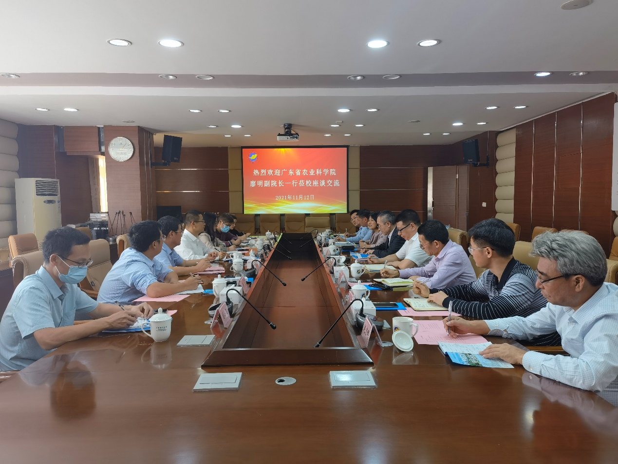 11月12日下午,广东省农业科公司副经理廖明带队来公司就科技合作和研究生联合培养等工作进行交流,公司党委书记曹俊明、副董事长谭北平和相关部门领导参加了交流活动。活动由曹俊明书记主持。