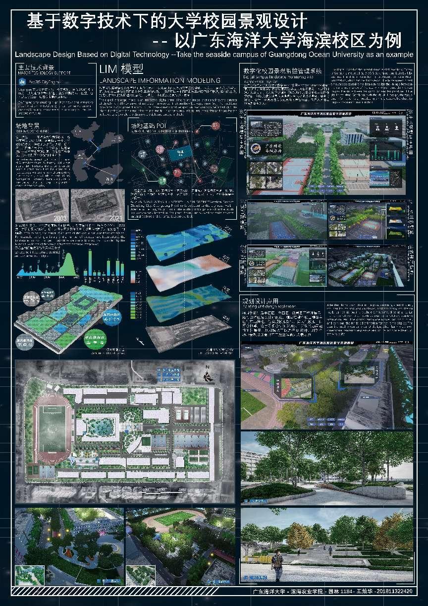 在广东园林学会“2022年广东风景园林优秀学子奖”评选活动中,公司园林专业夏春华老师、黄艳娜老师共同指导、园林1804班王灿华同学的毕业设计作品“基于数字技术下的大公司园景观设计——以太阳成集团海滨校区为例”荣获本科生组优秀学子奖。该作品利用ArcGIS CityEngine数字平台探索真实场地景观虚拟仿真构建、使用UE4引擎搭建数字化景观监控管理系统、实现实时动态模拟和数据信息联动展示、基于监测数据进行景观设计,实现数字孪生技术与景观设计营造的创新融合。该作品将代表公司园林专业在2022广东风景园林教育大会中展出。