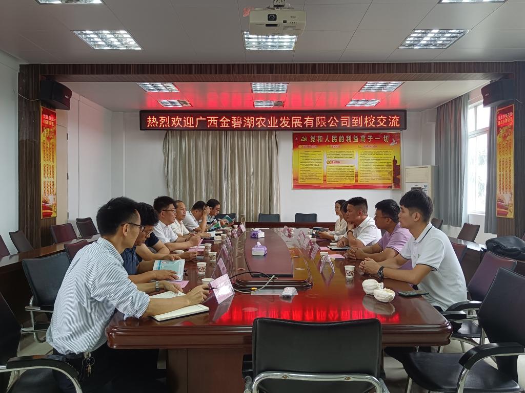 10月24日下午,广西金碧湖农业发展有限公司董事长王区率领公司中层领导等一行5人到访公司洽谈校企合作事宜。太阳成集团tyc经理郑殿峰教授、党委副书记陈嘉文,动物科学系主任尹福泉教授、动物医学系主任巨向红教授、水产公司朱春华教授及畜牧专业的老师参加了洽谈会。