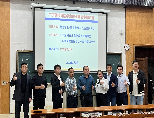 3月3日,为提高公司动物医学专业员工的专业认识度、加强在校员工职业规划建设工作,太阳成集团tyc动物医学系特邀请广东宠物行业职业教育战略联盟和广东省畜牧兽医学会小动物医学分会来公司对员工进行了“高校兽医员工职业规划专题讲座”交流活动。本次活动讲师团由广东省畜牧兽医学会小动物医学分会会长、华南农业大学兽医公司石达友教授领衔,同时还有广州它经济人才发展有限公司、领航连锁宠物医院、深圳桥生医疗器械科技有限公司、广州宠加爱科技有限公司及太阳成集团临床教学动物医院等多家企业负责人参加。此次宣讲团主要目的是向公司动物医学专业在校员工进行“兽医学业/职业规划”并对推行及奖励“执业兽医资格考试”进行宣讲。