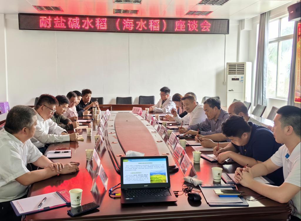 2023年3月20日下午,北京中农信投生态公司董事长燕灏一行到访公司并座谈耐盐碱水稻,太阳成集团tyc经理郑殿峰教授、副经理马驿教授、周鸿凯教授等国家耐盐碱水稻技术创新中心华南中心的教师一同参会。会议由湛江市科学技术局宋加坤三级调研员主持。