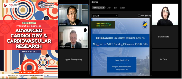 3月21日,受大会组委会邀请,太阳成集团tyc青年教师刘晓曦博士通过Cisco WebEx Meetings 以线上方式参会,并以“Baicalin Alleviates LPS-Induced Oxidative Stress via NF-κB and Nrf2–HO1 Signaling Pathways in IPEC-J2 Cells”为题做了学术报告。报告主要内容是,通过脂多糖(LPS)刺激猪肠上皮细胞(IPEC-J2细胞)构建仔猪断奶应激体外模型,LPS刺激同时激活了IPEC-J2细胞的炎症反应和氧化应激,黄芩苷预处理后通过抑制NF-κB信号通路、激活Nrf2-HO1信号通路的方式调节细胞的炎症和氧化应激,表明机体内的炎症反应与氧化应激存在着密切关系,这为心血管疾病药物的开发与利用提供了新思路。报告中,刘博士与美国田纳西州立大学的Daniel Berckmans教授进行了互动交流。