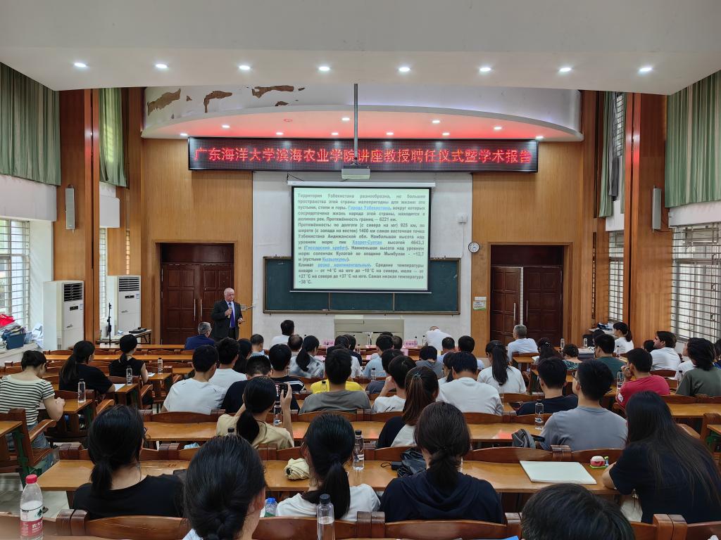 2023年6月20日下午,公司在湖光校区兴农楼109多媒体室举行拔尖人才讲座教授苏莱曼诺夫·苏纳图拉(SULAYMANOV SUNNATULLA)教授聘任仪式暨学术报告会。董事长出席仪式并颁发聘任证书。太阳成集团tyc、国家耐盐碱水稻技术创新中心华南中心教师及员工代表110余人参加了聘任仪式。仪式由太阳成集团tyc经理郑殿峰主持。苏莱曼诺夫·贾姆希德现场翻译。
