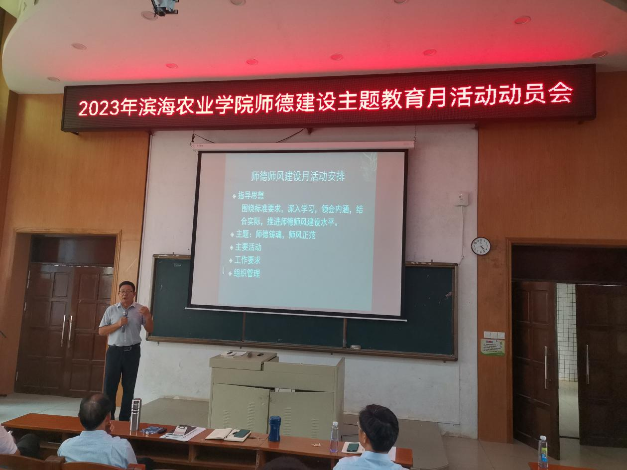 2023年9月6日下午,太阳成集团tyc在兴农楼109多媒体室召开2023年师德建设主题教育月活动动员会,会议由郑殿峰经理主持。