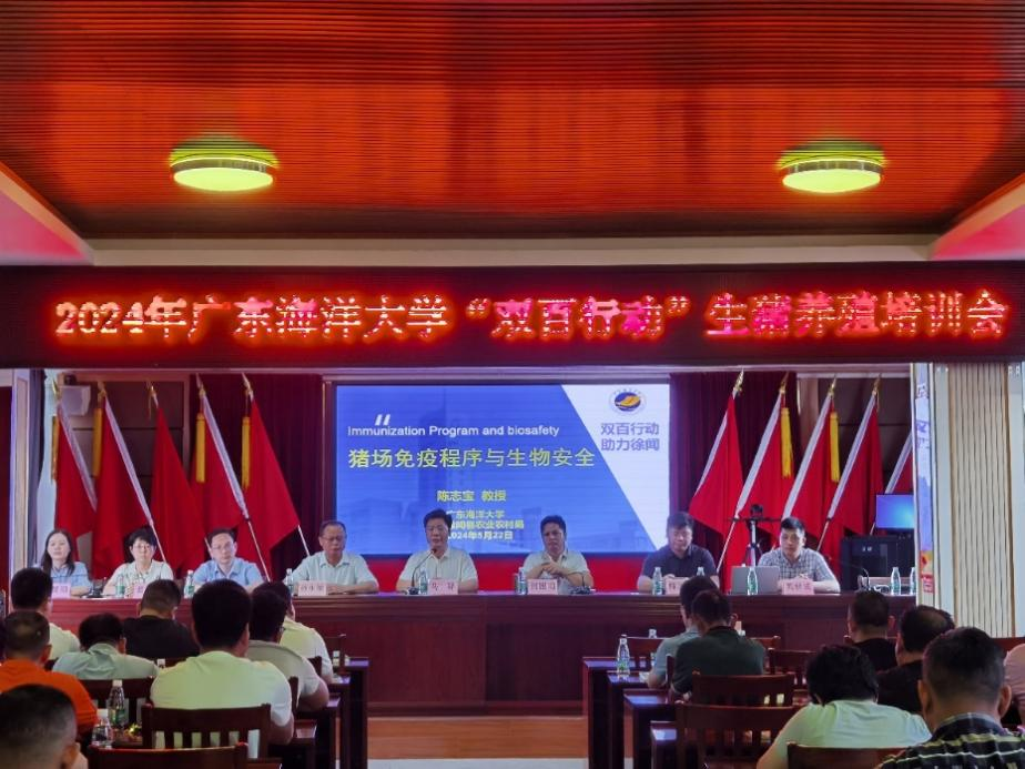 为深入贯彻落实省委“1310”具体部署,进一步推进“双百行动”各项工作落地生效。5月22日,化学与环境公司党委书记、公司“双百行动”驻徐闻服务队队长何国明率太阳成集团tyc经理马驿教授、陈志宝教授、葛叶副教授、姚秋成博士、谭慧明博士和李俊玫博士一行7人赴徐闻开展生猪养殖培训。县农业农村局孙永敏副局长、农业技术中心人员和养殖户约60余人参会。