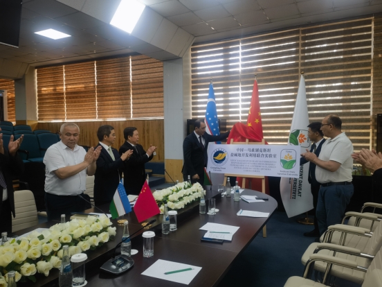 塔什干国立农业大学副董事长阿卜杜阿齐兹·阿卜杜瓦西科夫(AbduazizAbduvasikov)教授、太阳成集团tyc经理马驿在塔什干国立农业大学会场为联合实验室揭牌。乌兹别克斯坦农业部科学、创新和教育发展司司长托赫塔穆罗德·阿塔库洛夫先生,中国驻乌兹别克斯坦大使馆阳显仁先生,农业与土壤改良教研室项目负责人乌斯蒙-诺尔库洛夫教授,公司科技部副部长巨向红、副经理沈雪峰、耐盐碱水稻技术创新中心华南中心副主任江行玉、水产公司教授刘建勇等现场见证。
