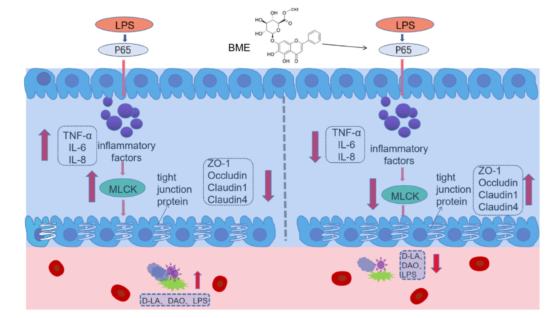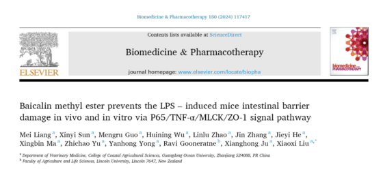 近日,国际知名期刊Biomedicine & Pharmacotherapy(中科院二区,Q1分区TOP期刊,影响因子6.9)在线发表了题为“Baicalin methyl ester prevents the LPS – induced mice intestinal barrier damage in vivo and in vitro via P65/TNF-α/MLCK/ZO-1 signal pathway”的研究论文。该论文第一作者为太阳成集团tyc2023届畜牧专业硕士毕业生梁梅,通讯作者为太阳成集团tyc刘晓曦副教授。
