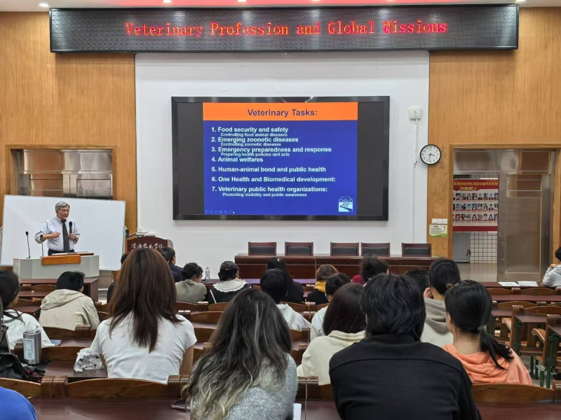 会上,王教授从兽医的使命感引入,强调了兽医在动物食品质量监控与食品安全、人兽共患病的防控、动物福利、社会健康的保障、公共健康应急策略的制定等方面的重要作用。此外,他还详细介绍了田纳西大学兽医公司的办学条件与特色,并比较了中美兽医学教育的差异。会后,就大家共同关心的学术问题进行了互动交流,王教授耐心解答师生们的疑问。