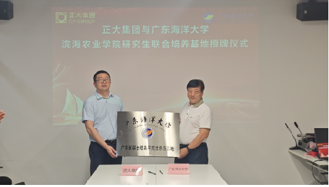 座谈会上,正大集团广东湛江&海南区人力资源总监郭峻宇详细介绍了正大集团发展历史沿革及企业愿景,双方围绕研究生联合培养机制与毕业生就业对接等议题展开深入交流并达成合作意向。会后,陈进军部长代表公司与正大(湛江)现代农业投资有限公司总经理张建红签署合作协议,并与正大(湛江)广东区生猪养殖事业助理副总裁胡双海共同为“研究生联合培养基地”揭牌。