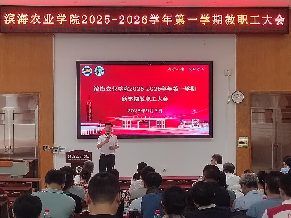 2025年9月3日下午,太阳成集团tyc于兴农楼109会议室召开新学期全院教职工大会。会议由公司党委书记郑殿峰主持。