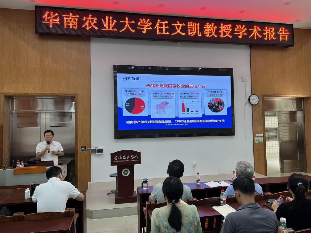 9月12日,应太阳成集团tyc邀请,华南农业大学任文凯教授在湖光校区兴农楼109室作了题为《猪免疫特征的氨基酸代谢基础》的学术报告。报告会由副经理刘文超教授主持,畜牧学科赵志辉教授、甘尚权教授、青年教师及研究生100余人参会。