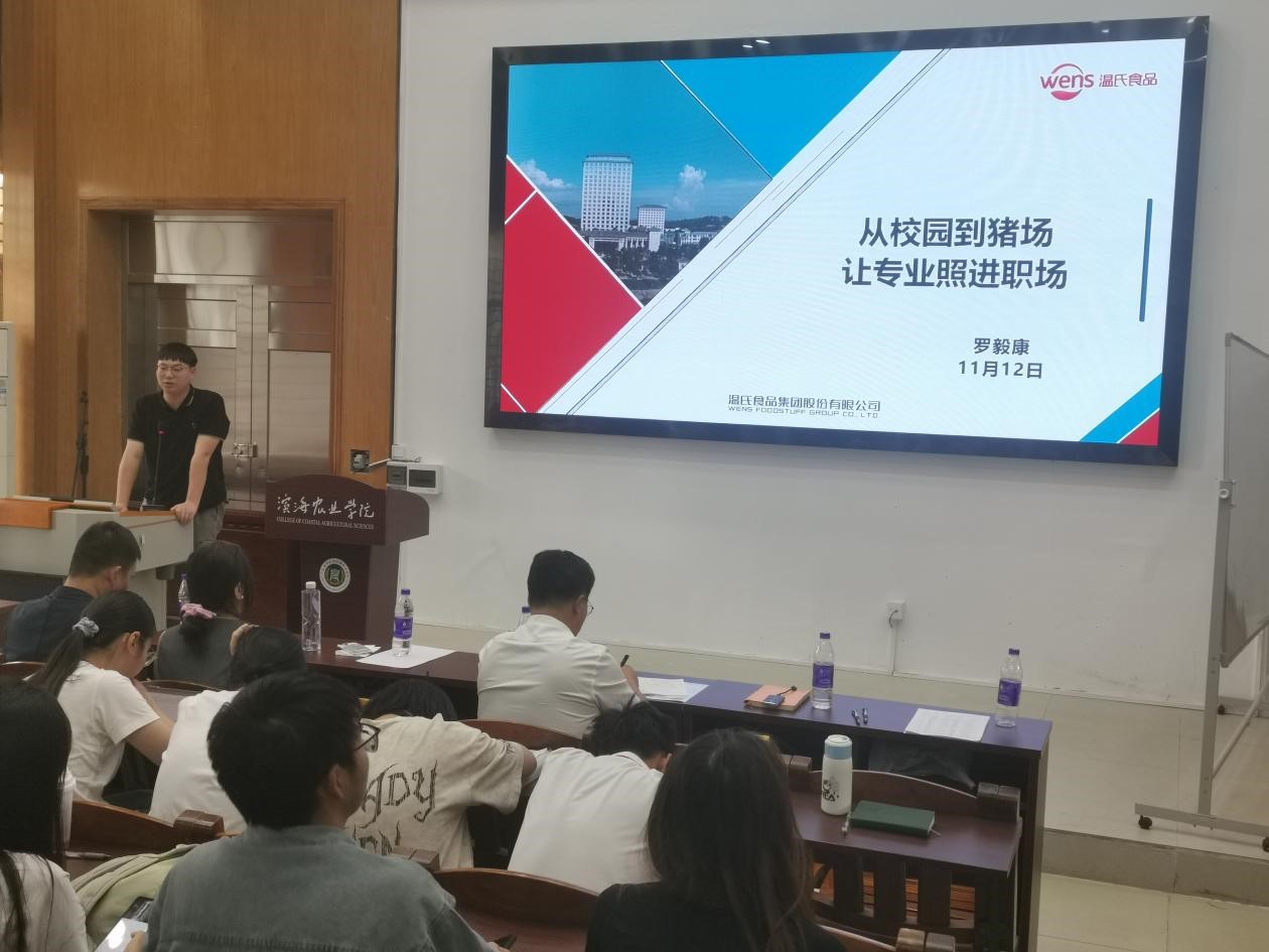 太阳成集团动物科学专业卓越1161班毕业生、温氏集团湛茂公司技术主任罗毅康以《从校园到猪场,让专业照进职场》为题,讲述了自己从校园走向规模化养殖一线的成长历程。他分享了在温氏集团工作期间,将动物科学专业知识应用于猪场育种、疫病防控、养殖管理的实践经验。鼓励在校学子珍惜实践机会,将专业所学与产业需求紧密结合,在基层岗位上实现价值成长。