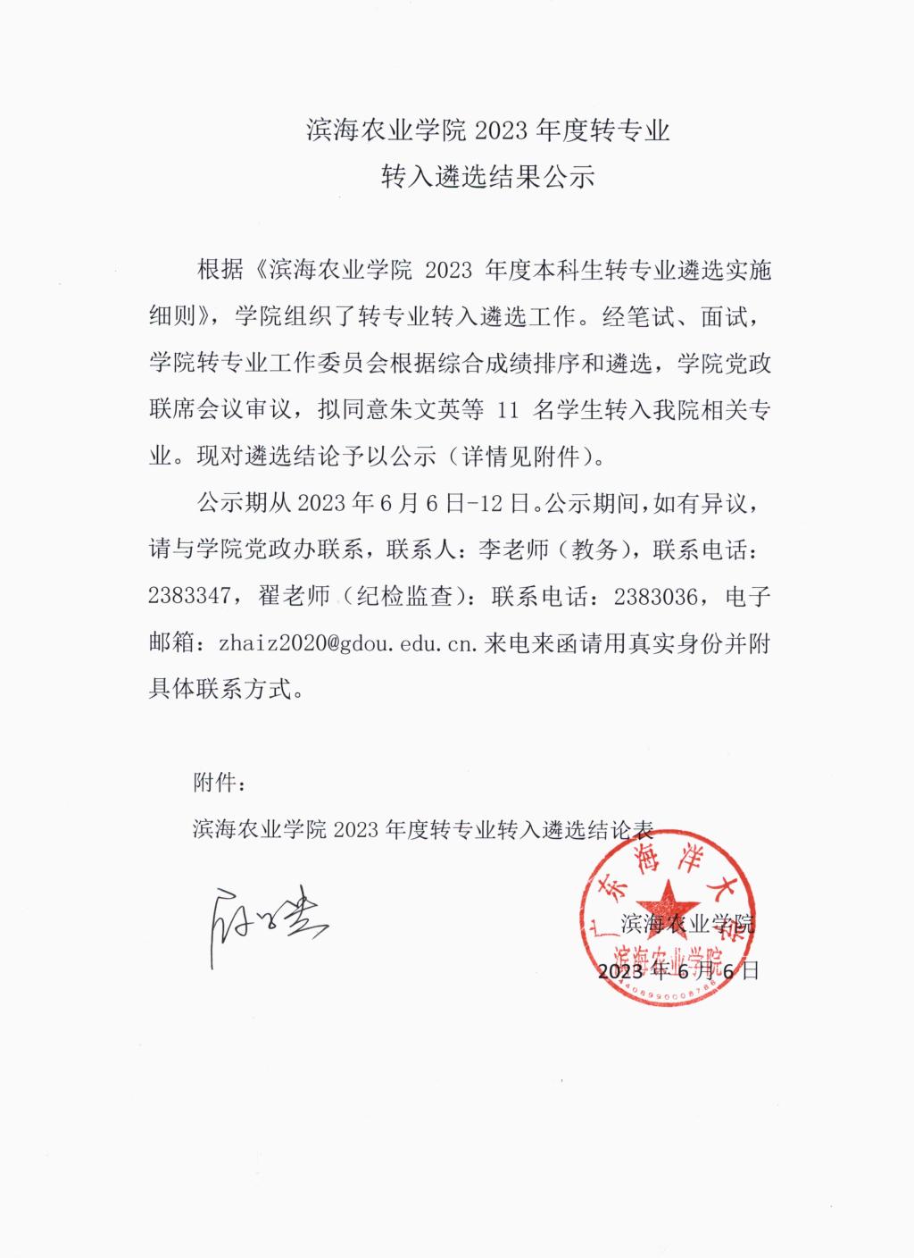 太阳成集团tyc2023年度转专业转入遴选结果公示