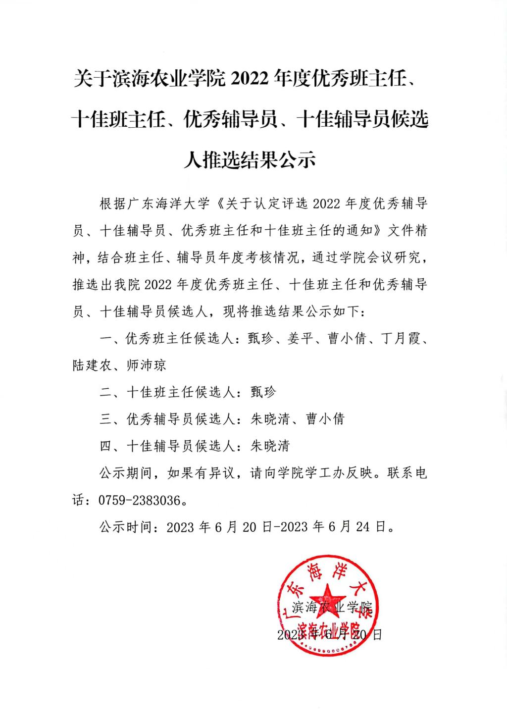 关于太阳成集团tyc2022年度优秀班主任、十佳班主任、优秀辅导员、十佳辅导员候选人推选结果公示