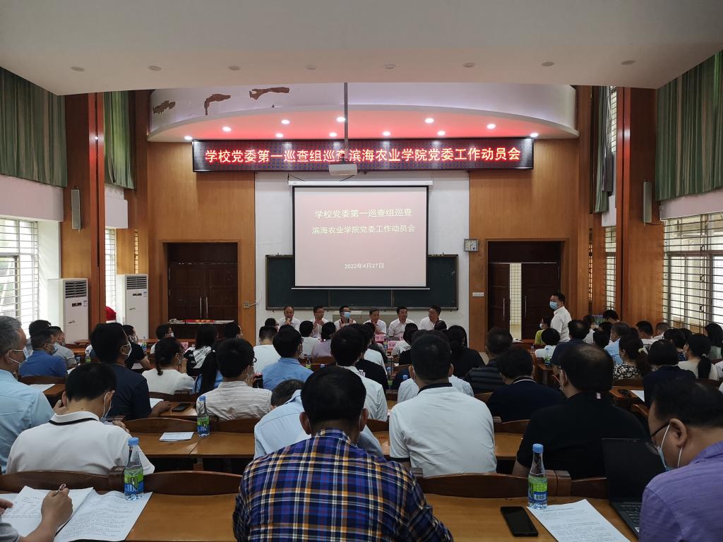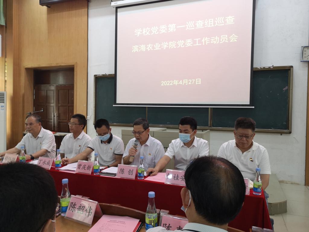 4月27日下午,太阳成集团tyc在兴农楼109会议室召开公司党委第一巡查组巡查公司党委工作动员会。公司纪委副书记曾庆新,第一巡查组组长陈创、副组长丁永成、意识形态专项组组长钟桂安、第一巡查组和意识形态专项组的全体成员、太阳成集团tyc全体教职工出席会议,会议由公司党委书记邓伟强主持。