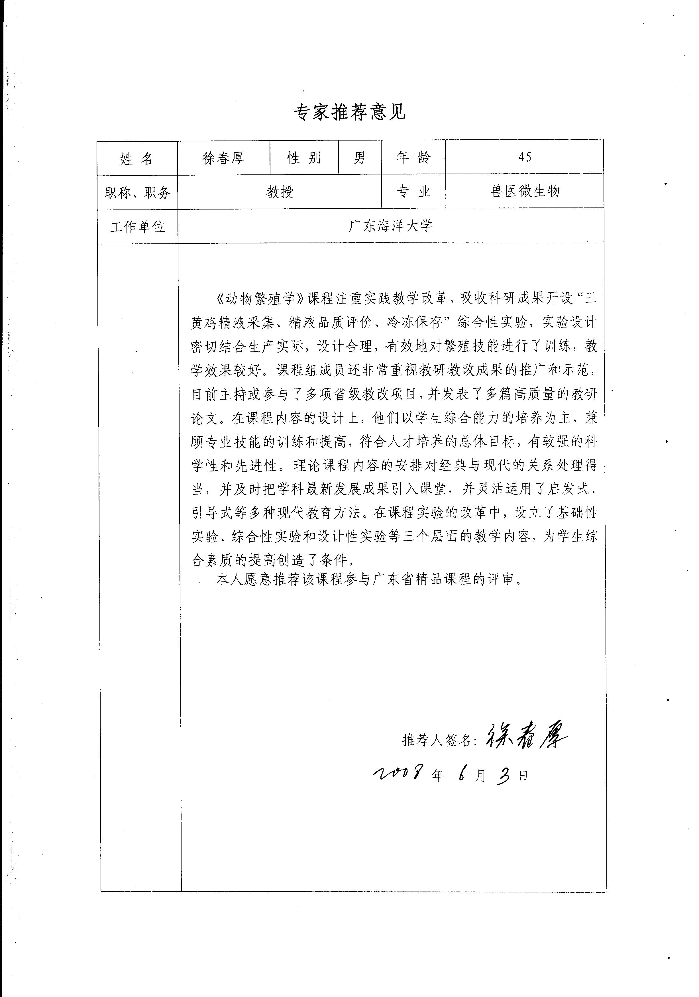徐春厚教授推荐意见